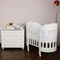 - в комплекте: матрас овальной формы, бампер, подушка с наволочкой и одеяло с пододеяльником.